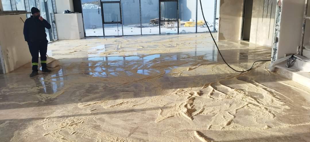 Beton yüzeyleri mermer parlaklığına dönüştüren profesyonel silim ve cilalama hizmeti.